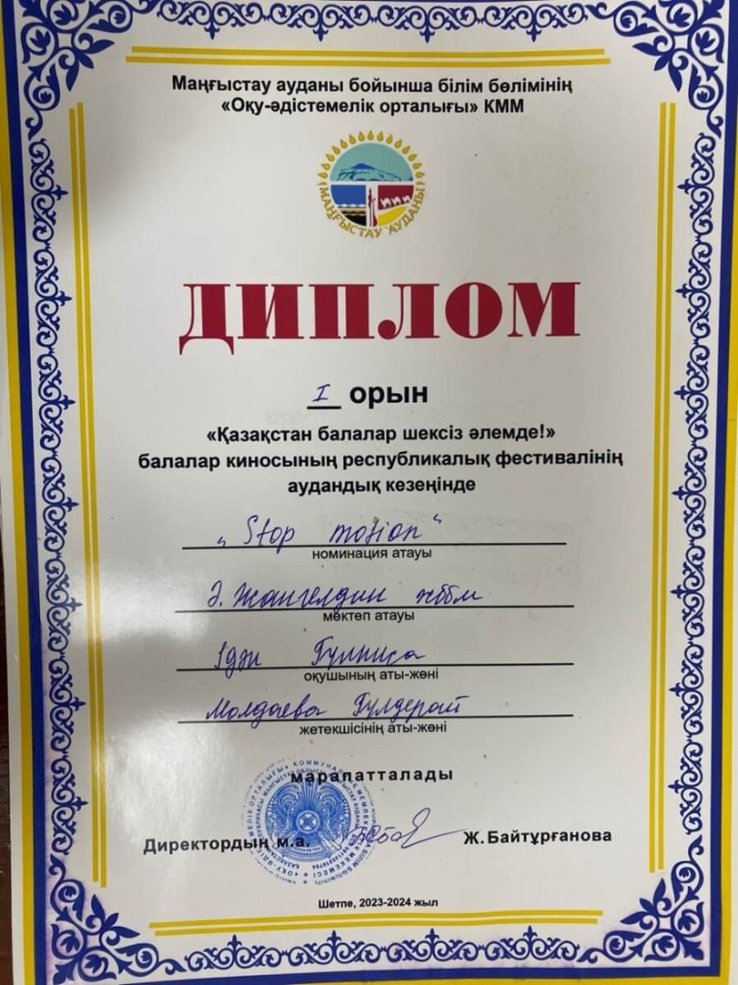 Маңғыстау аудандық білім бөлімінің «Құрмет грамотасы» 2021 жыл