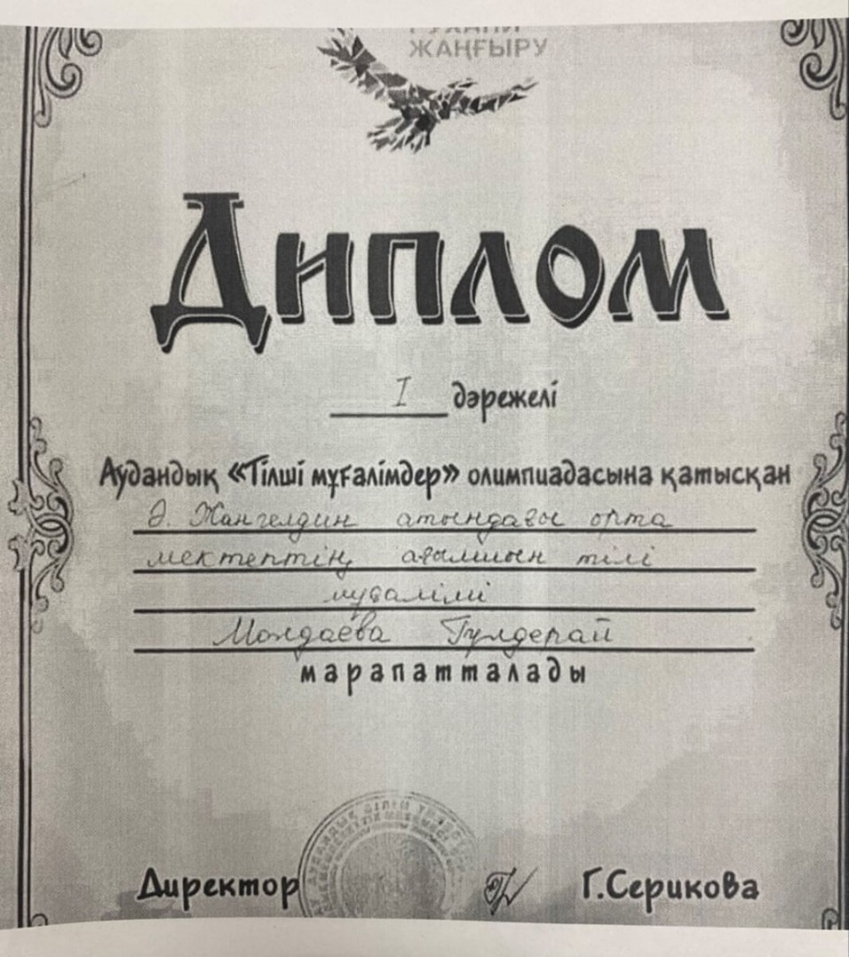Аудандық «Тілші мұғалімдер» олимпиадасы «І дәрежелі диплом»