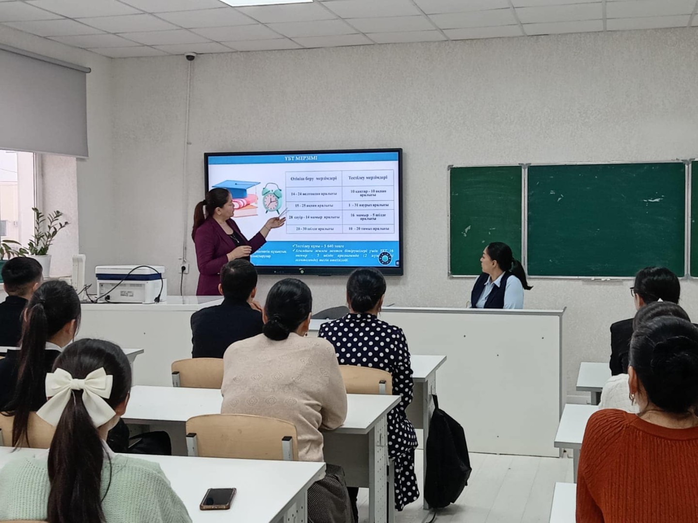 Кездесу барысында ҰБТ форматы, пәндерге бөлінген уақыт, тест құрылымы және шекті балл талаптары туралы толық ақпарат берілді. Сондай-ақ, тестке психологиялық дайындықтың маңыздылығы, уақытты тиімді басқару әдістері және стресті қалай жеңуге болатыны талқыланды.